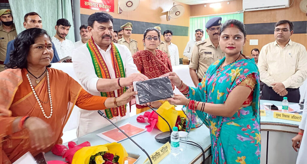 फतेहपुर। वन, पर्यावरण, जन्तु उद्यान एवं जलवायु परिवर्तन विभाग के राज्यमंत्री केपी मालिक ने जनपद भ्रमण के दौरान गुरूवार को जहां विकास भवन के सभागार में प्रदेश सरकार की संचालित योजनाओं की समीक्षा बैठक की वहीं लाभार्थी बीस छात्राओं को निःशुल्क टेबलेट का वितरण किया। टेबलेट हाथों में पाकर छात्राओं के चेहरे खुशी से खिल उठे। राज्यमंत्री ने जिला अस्पताल का औचक निरीक्षण करते हुए खामियां पाए जाने पर संबंधित अधिकारियों को फटकार भी लगाई। मलिन बस्ती गड़रिन पुरवा का निरीक्षण करने के बाद एक दलित के घर पर भोजन किया। उन्होने अधिकारियों को चेताया कि शासन की योजनाओं को पात्रों तक पहुंचाया जाए। इस कार्य में हीलाहवाली नहीं होनी चाहिए। राज्यमंत्री एवं जनपद के प्रभारी मंत्री केपी मलिक का आगमन बुधवार की शाम लोक निर्माण विभाग के निरीक्षण भवन में हुआ। उन्होने पार्टी पदाधिकारियों एवं कार्यकर्ताओं के साथ बैठक की। तत्पश्चात गुरूवार की सुबह सर्वप्रथम उन्होने जिले के प्रशासनिक अधिकारियों के साथ विकास भवन के सभागार में बैठक की। बैठक में केंद्रीय राज्यमंत्री साध्वी निरंजन ज्योति, जिला पंचायत अध्यक्ष अभय प्रताप सिंह उर्फ पप्पू जिलाधिकारी अपूर्वा दुबे, पुलिस अधीक्षक राजेश कुमार सिंह के अलावा अन्य जनप्रतिनिधि भी मौजूद रहे। बैठक को संबोधित करते हुए राज्यमंत्री ने कहा कि शासन की योजनाओं को धरातल पर उतारा जाए। अंतिम पायदान पर खड़े लाभार्थी को भी योजनाओं का लाभ पहुंचाया जाए। उन्होने कहा कि शासन की योजनाओं में गड़बड़ी पाई गई तो संबंधित अधिकारियों के खिलाफ कार्रवाई की जाएगी। बैठक के पश्चात उन्होने बीस लाभार्थी छात्राओं को निःशुल्क टेबलेट का वितरण किया। इसके बाद राज्यमंत्री का काफिला सीधे जिला अस्पताल पहुंचा। जहां उन्होने महिला, पुरूष समेत अन्य वार्डों का निरीक्षण कर व्यवस्थाओं को परखने का काम किया। भर्ती मरीजों ने भी राज्यमंत्री से अपनी-अपनी समस्याओं से रूबरू कराया। जिस पर राज्यमंत्री का पारा सातवंे आसमान पर दिखा। उन्होने संबंधित अधिकारियों को कड़ी फटकार लगाई। उन्होने कहा कि जिला अस्पताल में व्यवस्थाएं दुरूस्त होनी चाहिए। स्वास्थ्य के साथ खिलवाड़ बर्दाश्त नहीं होगा। इसके बाद राज्यमंत्री मलिन बस्ती तुराबअली का पुरवा पहुंचे। जहां उन्होने बस्ती का निरीक्षण करते हुए दलित के घर भोजन किया। उन्होने कहा कि बीजेपी आज ऐसे ही लोगों की बदौलत आज यहां तक पुहंची है। हमारे लिए न कोई बिरादरी है न कोई जाति, न कोई धर्म है। हम सब एक है और हम सबका साथ, सबके विकास और सबके विश्वास पर आगे बढ़ते है। इस मौके पर भाजपा जिलाध्यक्ष आशीष मिश्रा, बिंदकी विधायक जय कुमार सिंह जैकी, जहानाबाद विधायक राजेंद्र पट