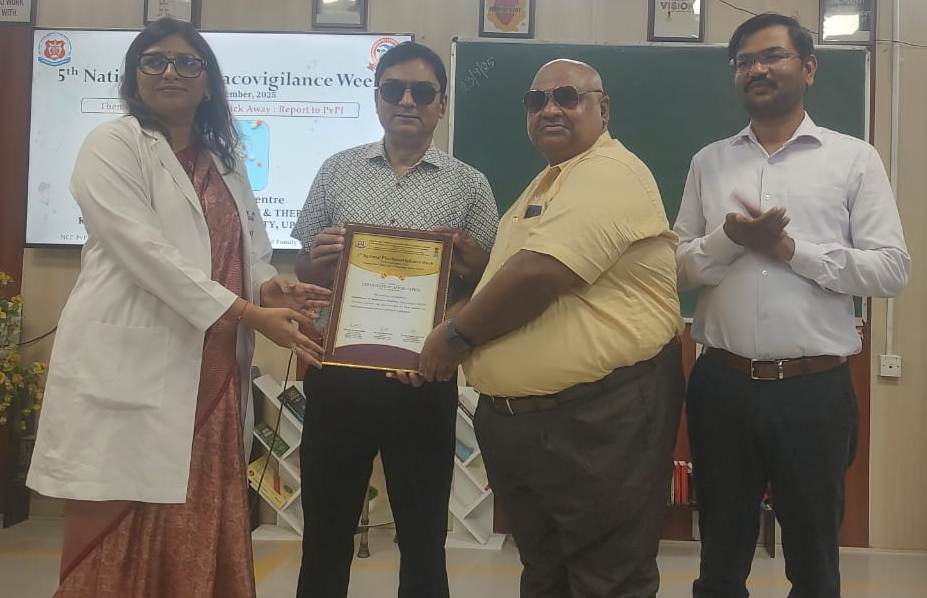 लखनऊ।किंग जॉर्ज चिकित्सा विश्वविद्यालय (केजीएमयू) के रेस्पिरेटरी मेडिसिन विभाग को राष्ट्रीय फार्माकोविजिलेंस सप्ताह-२०२५ के अवसर पर प्रतिकूल दवा प्रतिक्रियाओं (ADR) की सर्वाधिक संख्या रिपोर्ट करने के लिए सम्मानित किया गया। यह सम्मान संस्थान के फार्माकोलॉजी विभाग में आयोजित समारोह में विभागाध्यक्ष प्रो. सूर्यकान्त को प्रदान किया गया। इस अवसर पर डॉ. ज्योति बाजपेई और डॉ. अंकित कुमार को भी सम्मानित किया गया।कुलपति डॉ. (प्रो.) सोनिया नित्यानंद ने इस उपलब्धि पर विभाग को बधाई देते हुए कहा कि यह सम्मान विश्वविद्यालय की शिक्षा, शोध और रोगी सेवा की उत्कृष्ट परंपरा का परिचायक है।