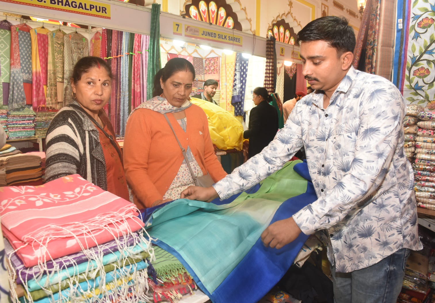 प्रदर्शनी में देश के विभिन्न राज्यों से आए बुनकरों द्वारा तैयार किए गए उत्कृष्ट सिल्क और हैंडलूम परिधान प्रदर्शित किए गए हैं। इनमें बनारसी, चंदेरी, तस्सर, कांचीपुरम, इक्कत, पैठानी और जयपुरी बगरू प्रिंट जैसे परिधान विशेष आकर्षण का केंद्र हैं। इसके साथ ही सिल्क/हैंडलूम मार्क वाले शुद्ध प्राकृतिक रेशों से बने उत्पादों ने भी दर्शकों का ध्यान खींचा है। हर स्टॉल पर पारंपरिक तकनीकों, बारीक कारीगरी और क्षेत्रीय पहचान की झलक साफ दिखाई देती है, जो भारतीय वस्त्र विरासत की समृद्धता को रेखांकित करती है।